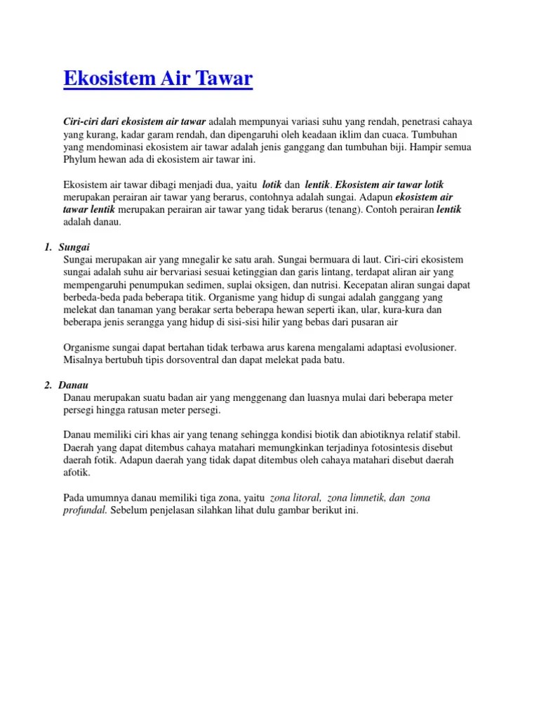 Ciri Ciri Ekosistem Air Tawar Lentik - Ekosistem Darat Air Tawar Laut Pantai Sinibelajar - Sungai sendiri diartikan sebagai suatu .