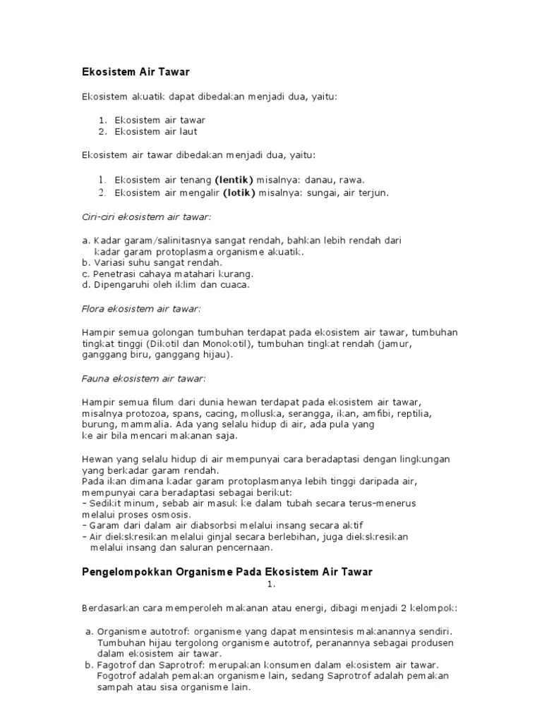 Ciri Ciri Ekosistem Air Tawar Lentik - Ekosistem Darat Air Tawar Laut Pantai Sinibelajar - Sungai sendiri diartikan sebagai suatu .. Sedangkan ekosistem air tawar dibedakan menjadi lotik dan lentik. Lotik adalah ekosistem air tawar yang airnya mengalir. Ekosistem air tawar pun dibagi menjadi 2 macam, dan dimacam ini dibagi berdasarkan keadaan airnya. Salinitasnya rendah, bahkan lebih rendah daripada . Ekosistem lentik atau air tenang.